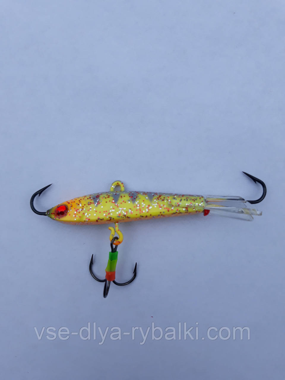 Балансир рибальський EOS Балансир — це досить уловиста, популярна в сучасних рибалок штучна приманка, виготовлена у формі рибки. Від воблерів або блешень вона відрізняється тим, що до неї не тільки підвішується трійник, а й протягнуті наскрізь два додаткові гачки — у хвості та в голові. Ще одна відмітна риса балансира від інших принад — стабілізатор у хвості, що забезпечує власну виразну гру. На волосінь балансир кріпитися за допомогою петельки, прикріпленої зверху на спині рибки. Тому щодо волосіні балансир розміщується або перпендикулярно, або голова трохи піднята.